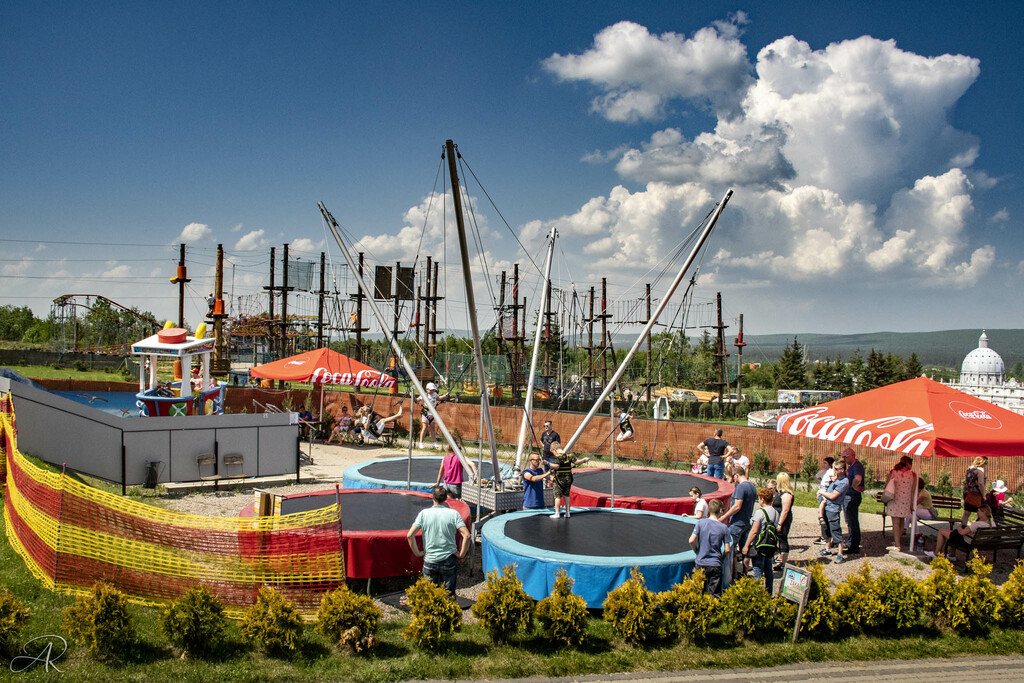 | Eurobungee | Trampoliny z uprzężami i gumami |